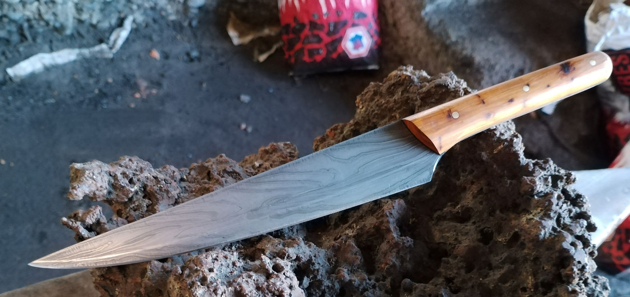 Forgées dans la tradition, les lames damassées sont réalisées à partir d’acier, soigneusement sélectionné.